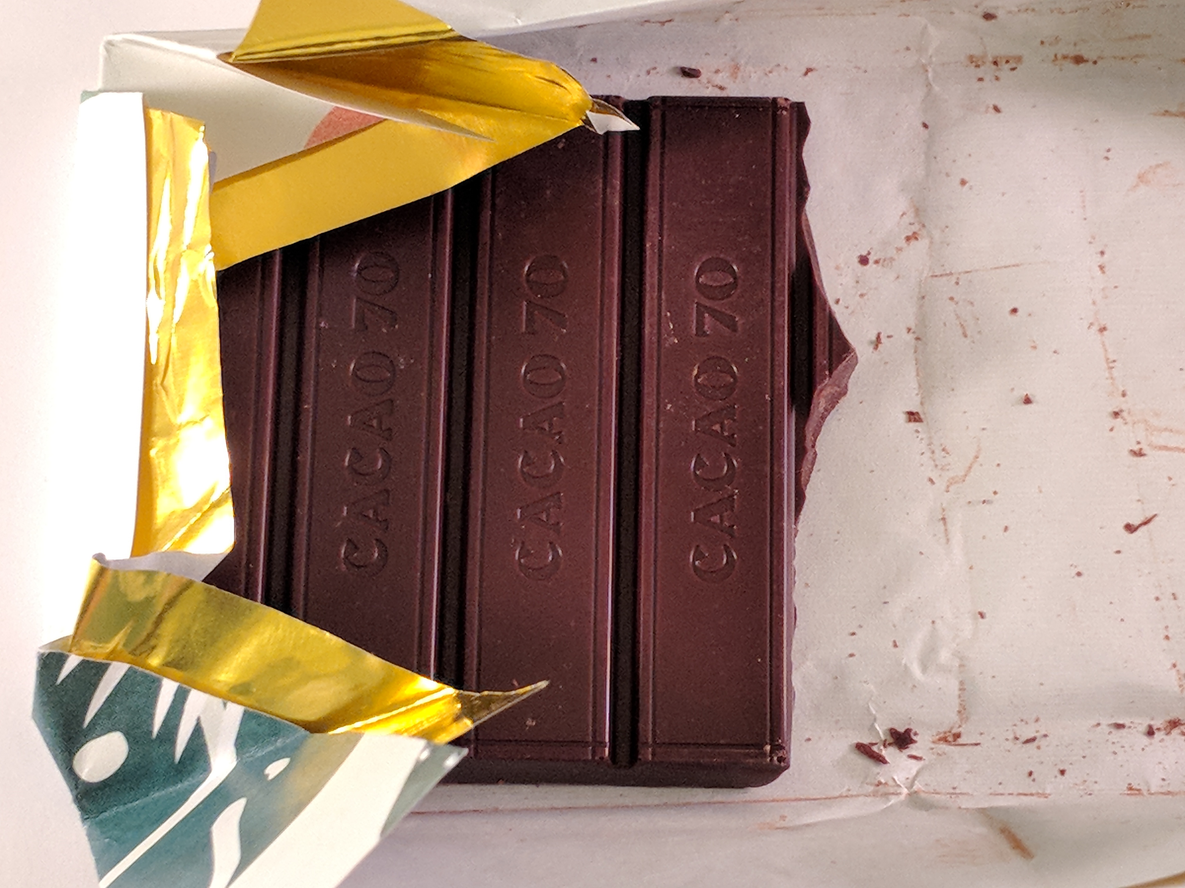 For the 70%: the aroma wafted off the bar the moment I put it in my mouth and had a solid black cherry “tanginess” — as I let the bar melt in my mouth, I could taste the tang the most when the chocolate reached the sides of my tongue.*